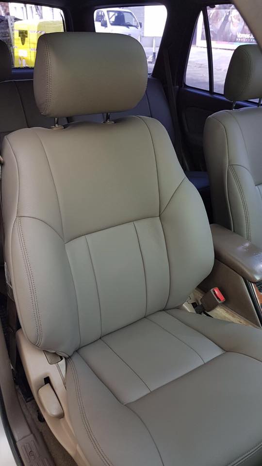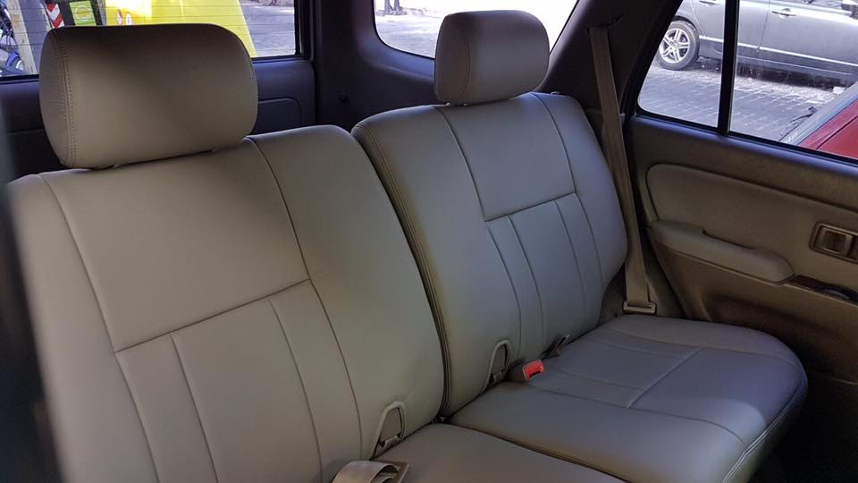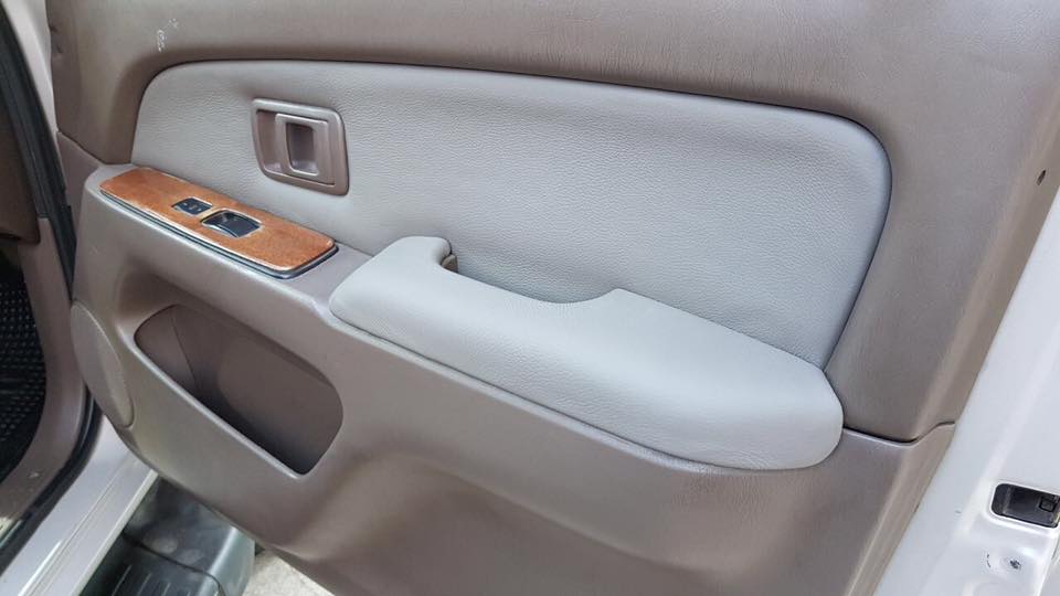 Restauramos las butacas y los paneles de las puertas de una Toyota SW4 98′ trabajando con cuero delicado y fino color beige.