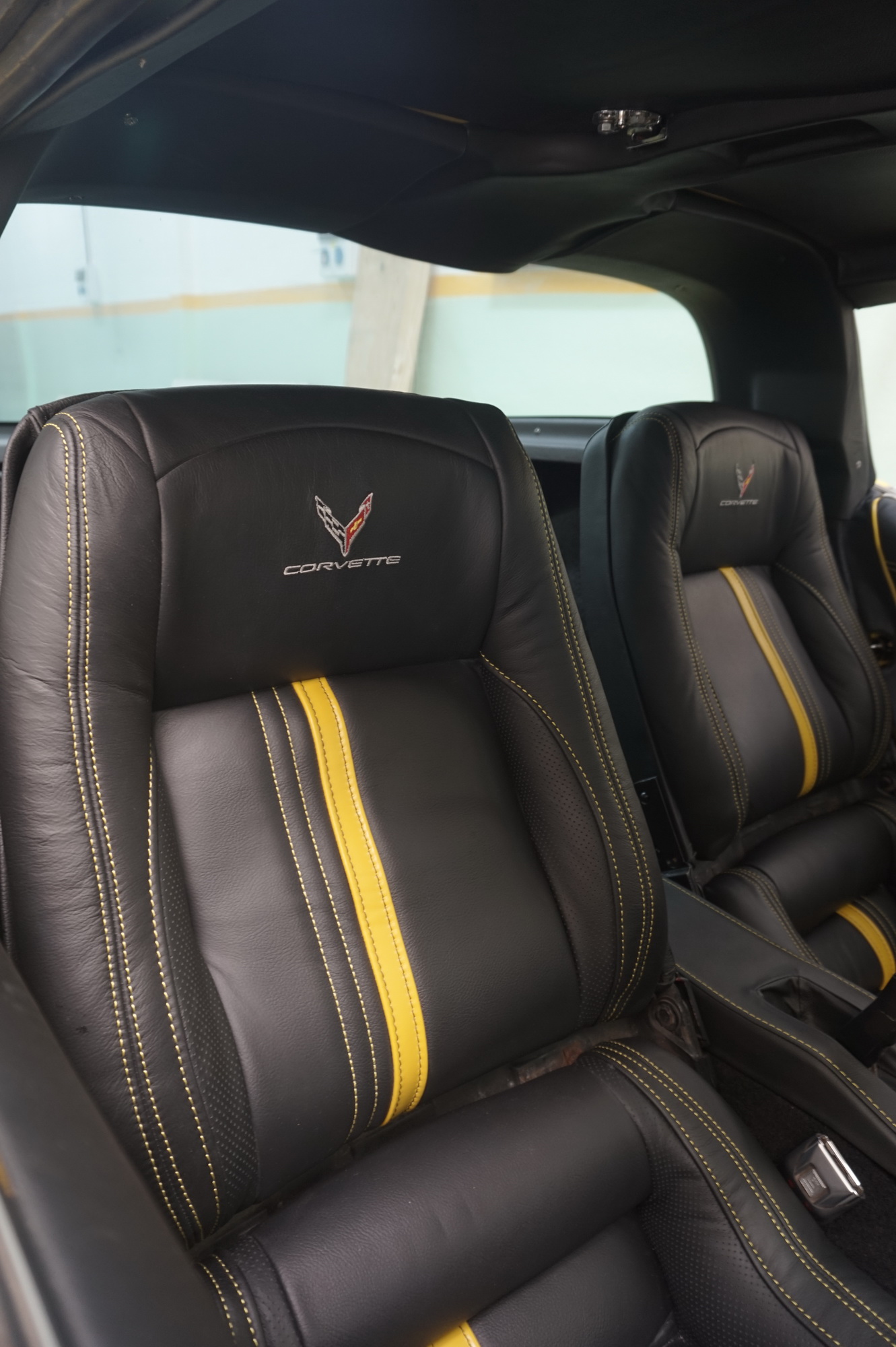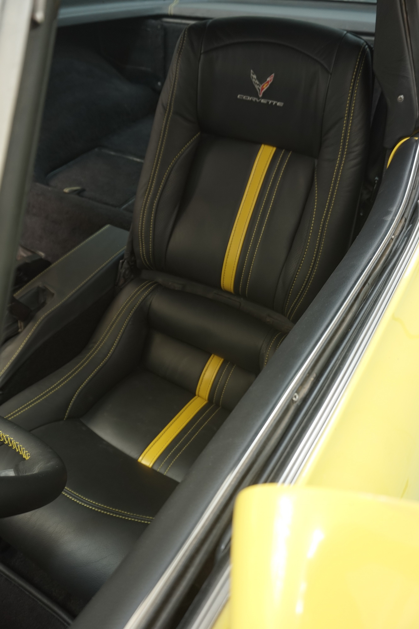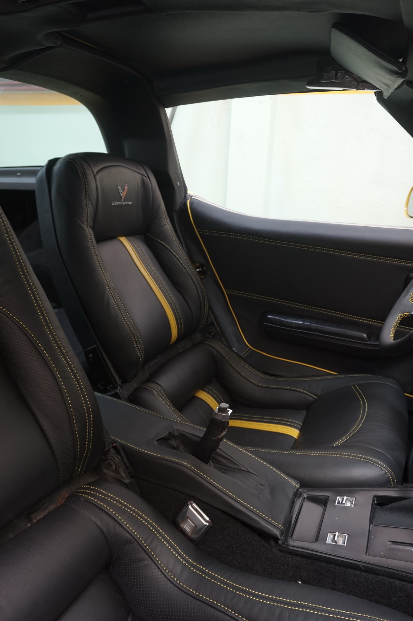 Para complementar la belleza del Corvette Stingray, nuestro equipo de tapicería ha diseñado una tapicería en cuero negro con detalles en cuero amarillo. Las butacas delanteras cuentan con un bordado del logo de Corvette en los centros, destacado por nuestras custuras dobles en hilo amarillo. La atención al detalle en cada costura y acabado es evidente, lo que garantiza que su feliz propietario disfrutará de un interior lujoso y elegante.