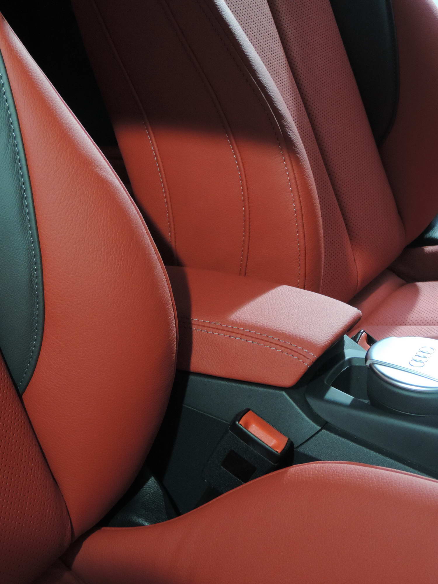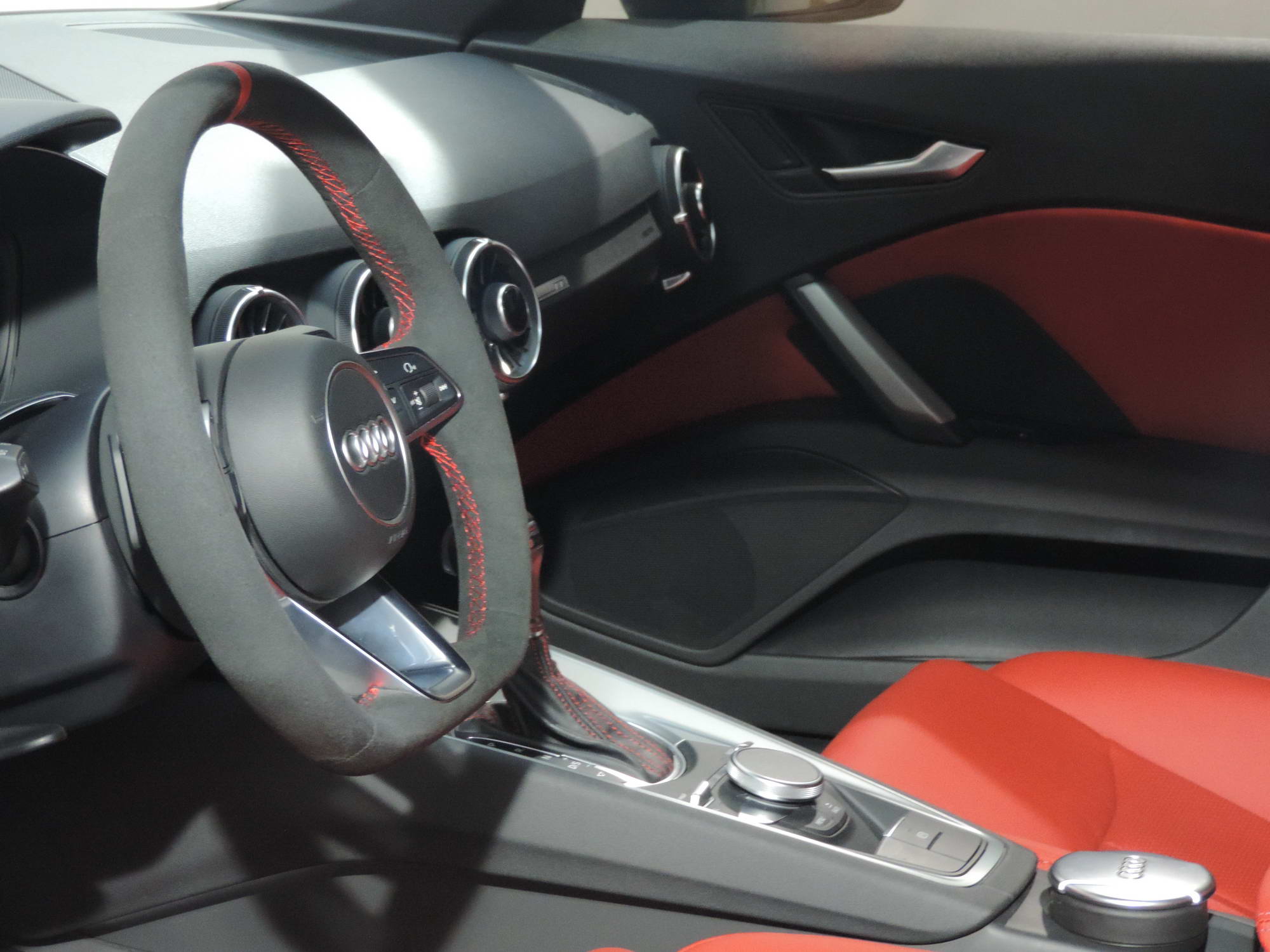 El tapizado de cuero premium rojo combinado con grafito fue la elección perfecta para lograr un estilo único y llamativo. La combinación de estos colores encaja perfectamente con el carácter deportivo del Audi TT. Además, los centros perforados del cuero añaden una textura interesante al interior del auto.