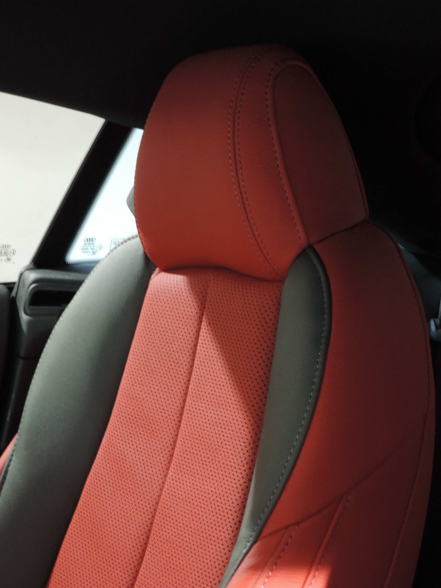 Para darle un toque extra de deportividad, decidimos usar hilo gris oscuro para la costura. Esto contrasta muy bien con el cuero rojo y crea una sensación de movimiento en el interior del auto. La costura en hilo gris oscuro también agrega una capa adicional de detalle al diseño.