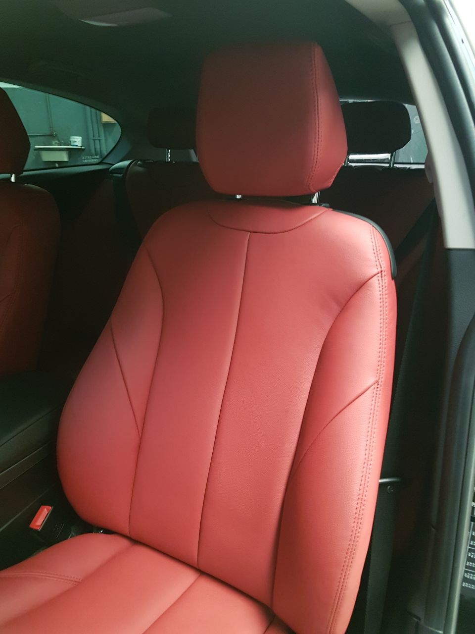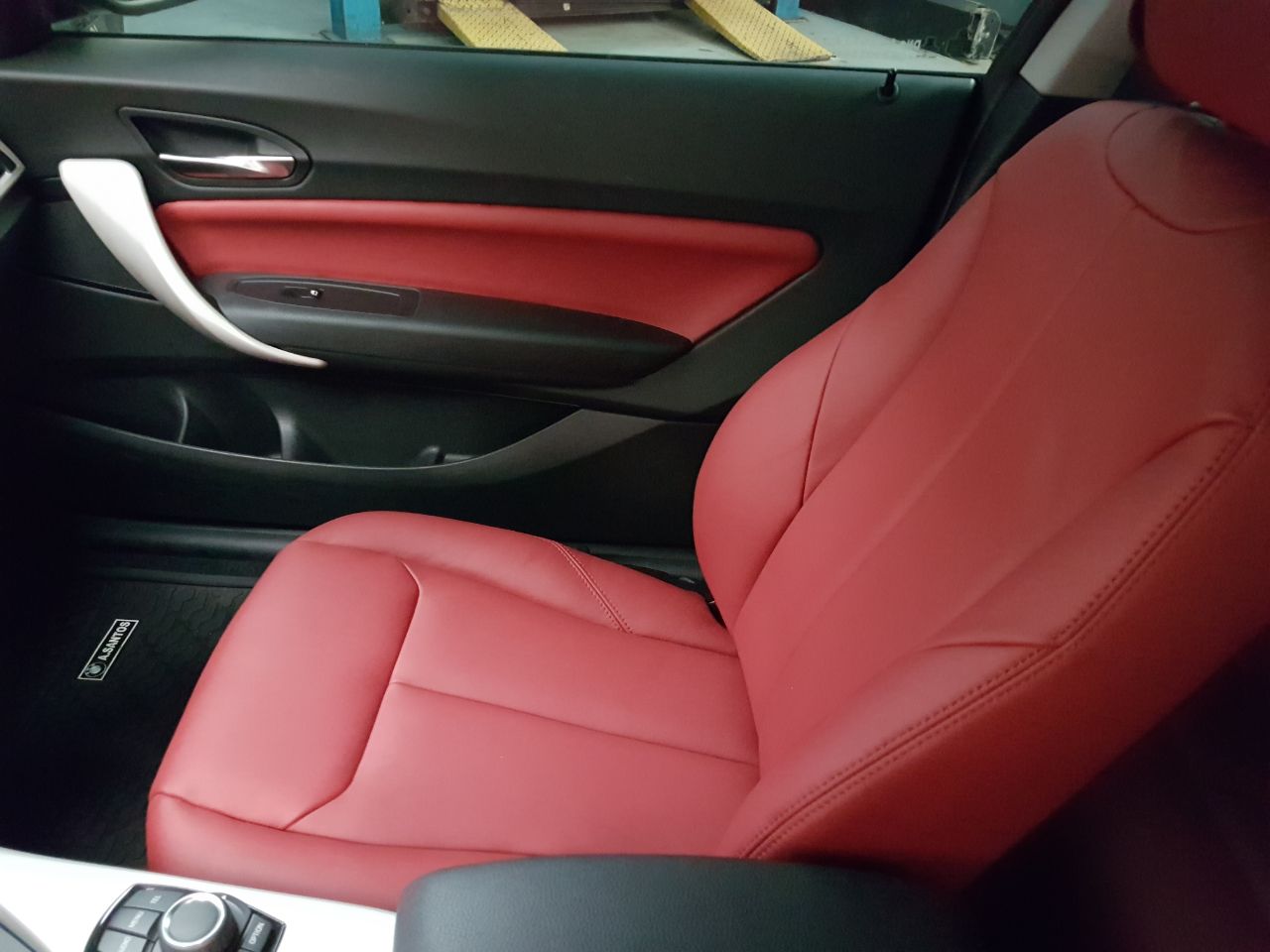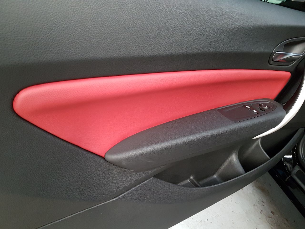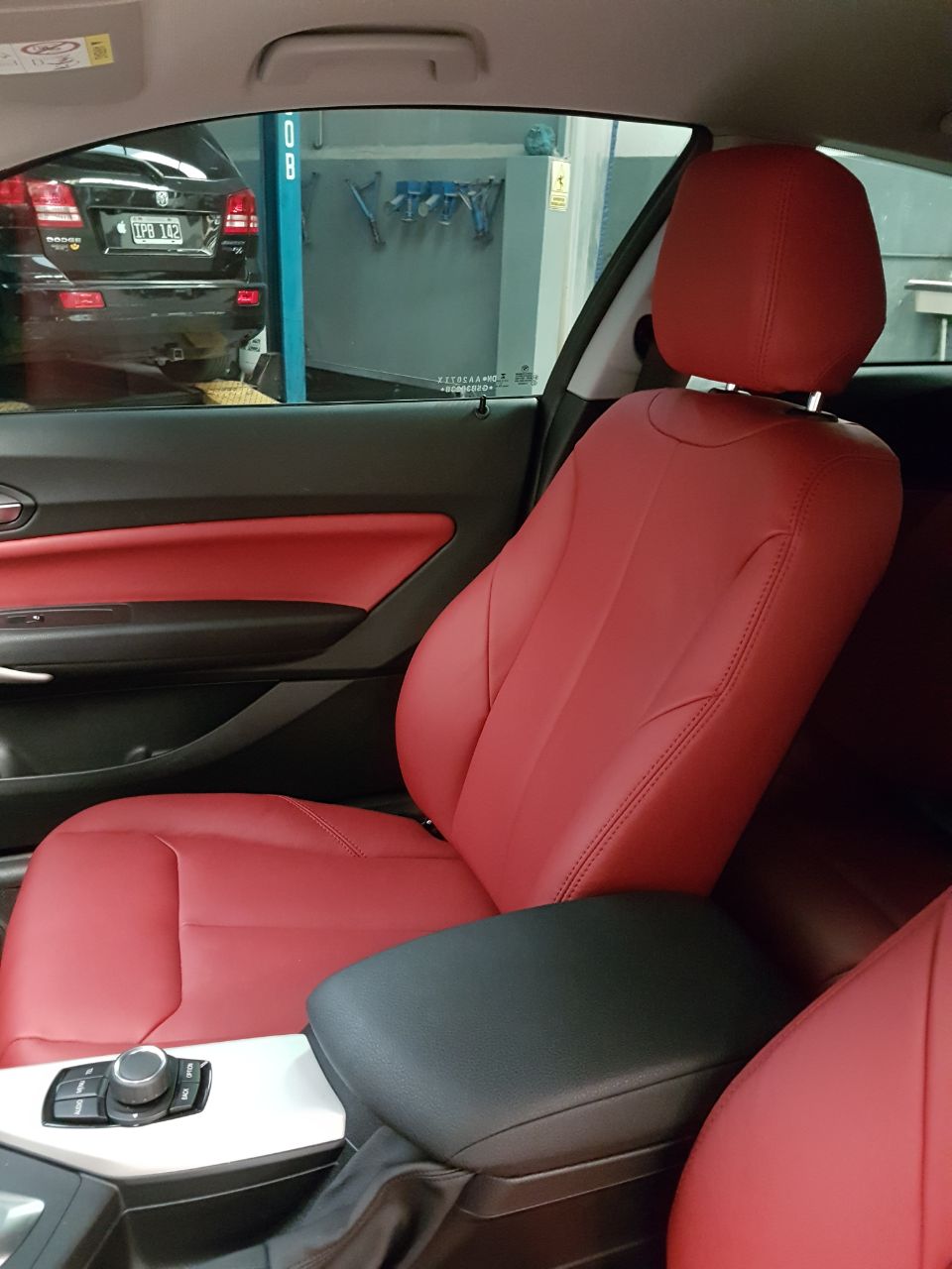 Cuero Premium color rojo con doble costura al tono, lo que permite una perfecta combinación con el interior oscuro de este BMW 120.