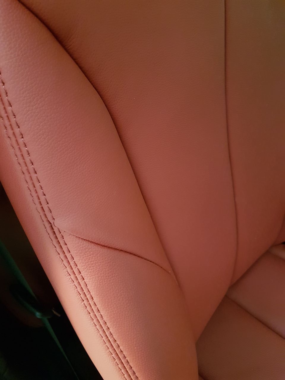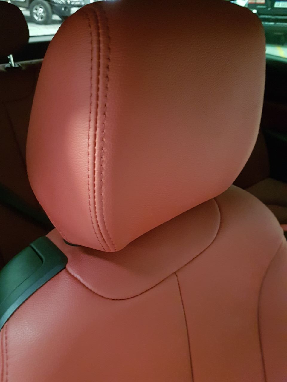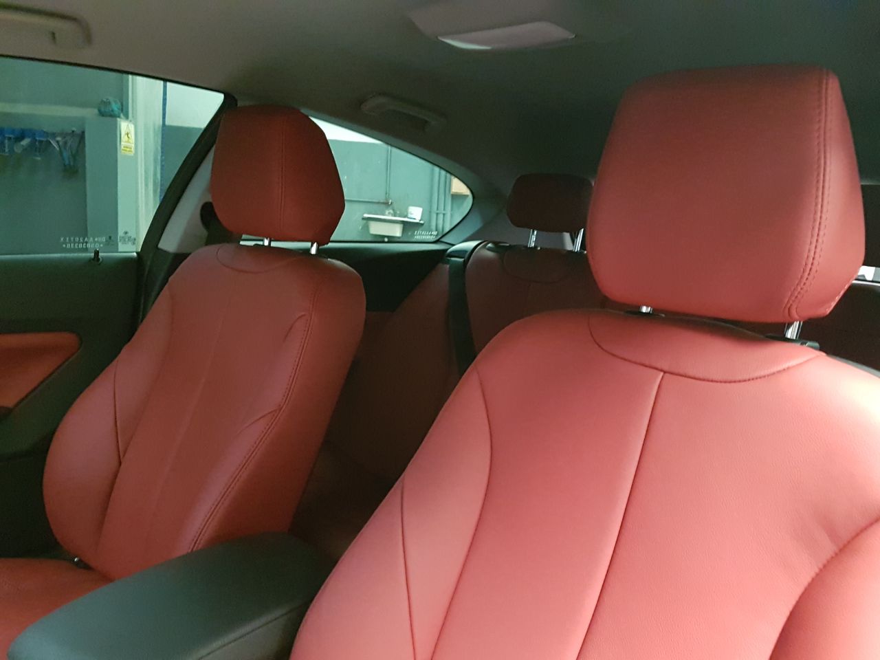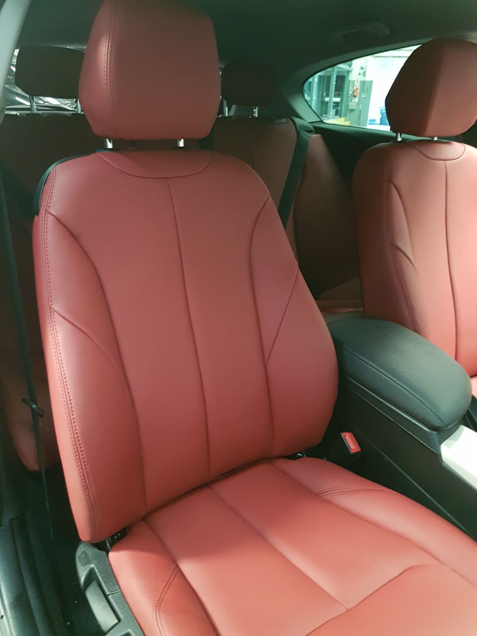 Cuero Premium color rojo con doble costura al tono, lo que permite una perfecta combinación con el interior oscuro de este BMW 120.